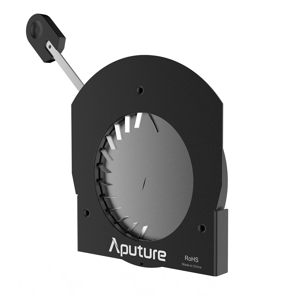 The Aputure Spotlight Max Iris is a heavy-duty, 24-blade mechanical accessory designed exclusively for the Spotlight Max projection system. It allows users to precisely reduce the size of the illumination circle via a lever without needing to change lenses or move the fixture.