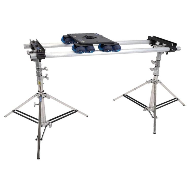The Panther Classic Dolly is a professional electro-mechanical camera system featuring a CPU-controlled central column that provides a 67 cm (27") lift range with a maximum lifting force of 250 kg (550 lbs). Weighing approximately 144 kg (318 lbs) in operating configuration, it utilizes a 24V battery system to achieve a full vertical travel speed of just 3.5 seconds. Its versatile chassis supports both 2-wheel steering and crab modes, with pivoting wheel arms that adjust the dolly width between 53.5 cm and 82.5 cm to accommodate standard 36 cm or 62 cm track widths.