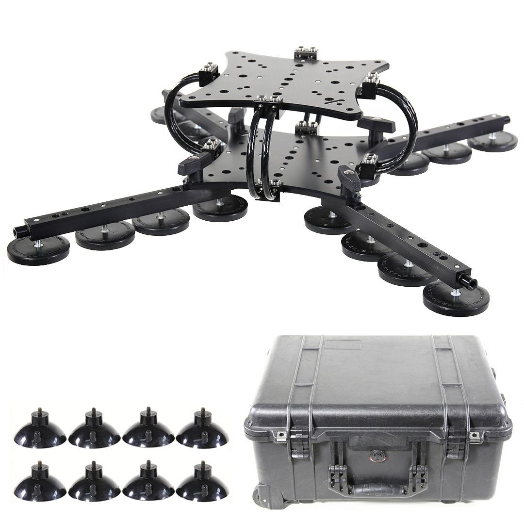 RigWheels Car Mount is a modular vehicle rigging system that uses high-power rare-earth magnets, suction cups, or both to securely attach cameras to a vehicle's exterior. It is highly regarded for its all-in-one designs that integrate mounting, positioning, and vibration isolation into a single, quickly deployable platform